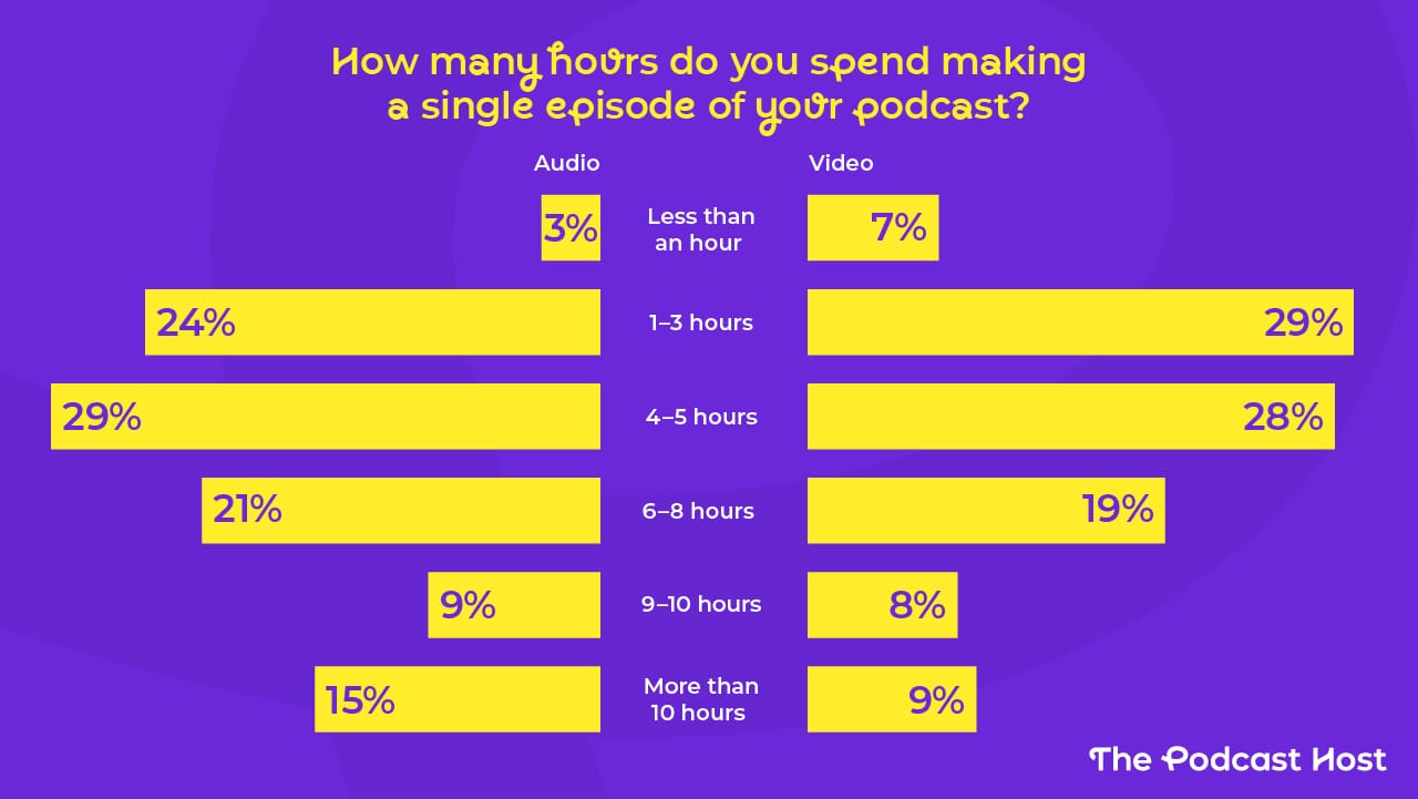 Most indie video and audio-only podcasters take 1-5 hours creating each episode.